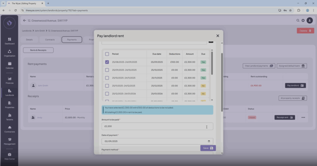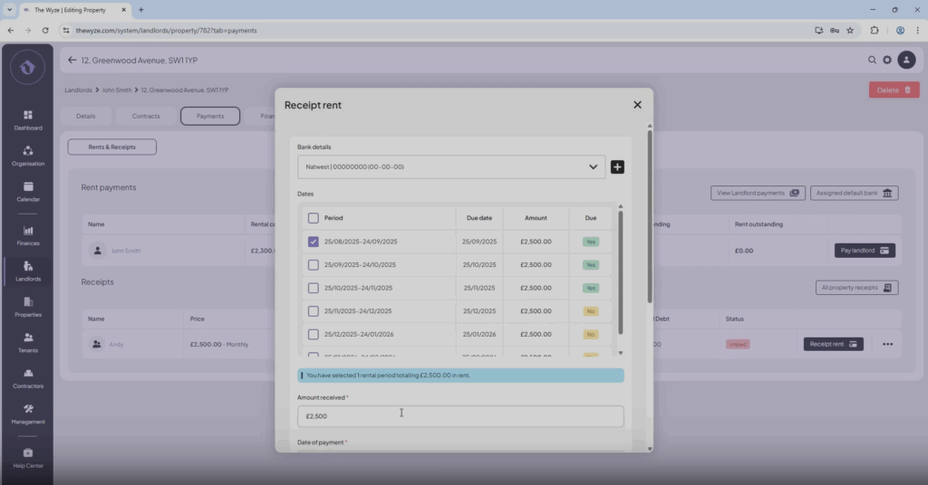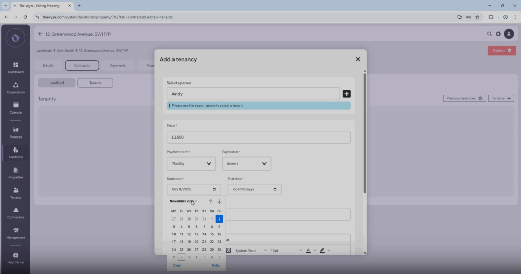 - Your landlord and property should already be added (follow the other videos for the how to guide on those).