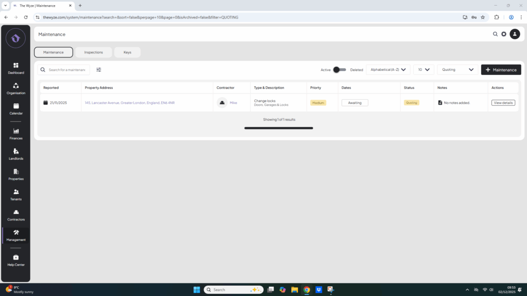- This is the very first stage of adding a job, only the job description and maintenance type have been entered.