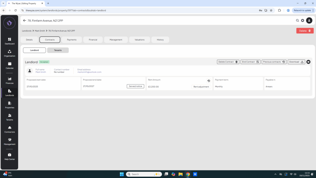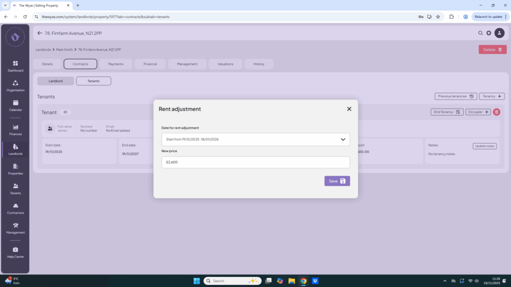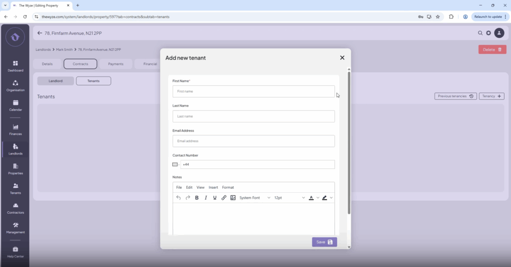 - Fill in the tenant’s details.