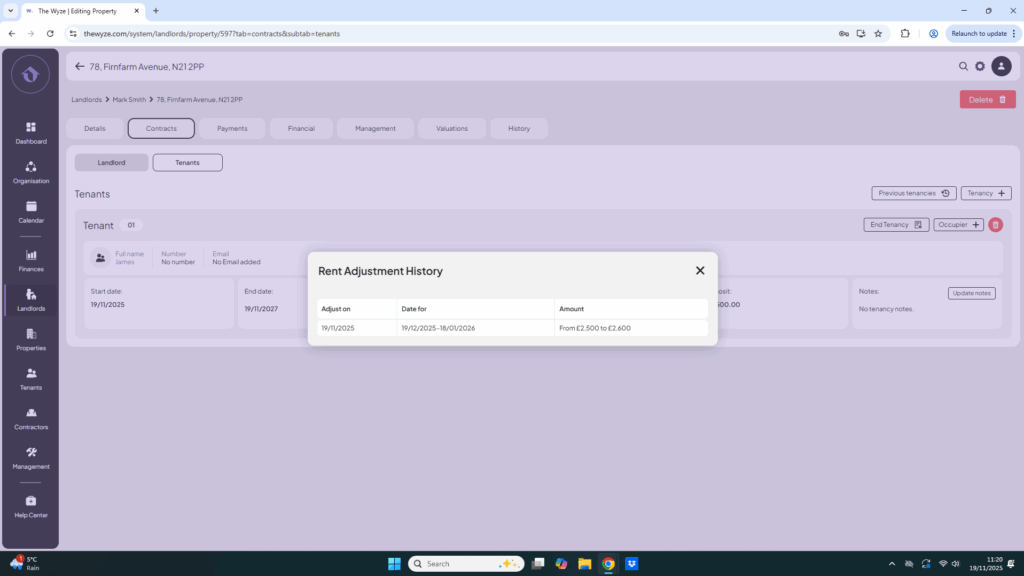 - Review the details of the rent adjustment made.
