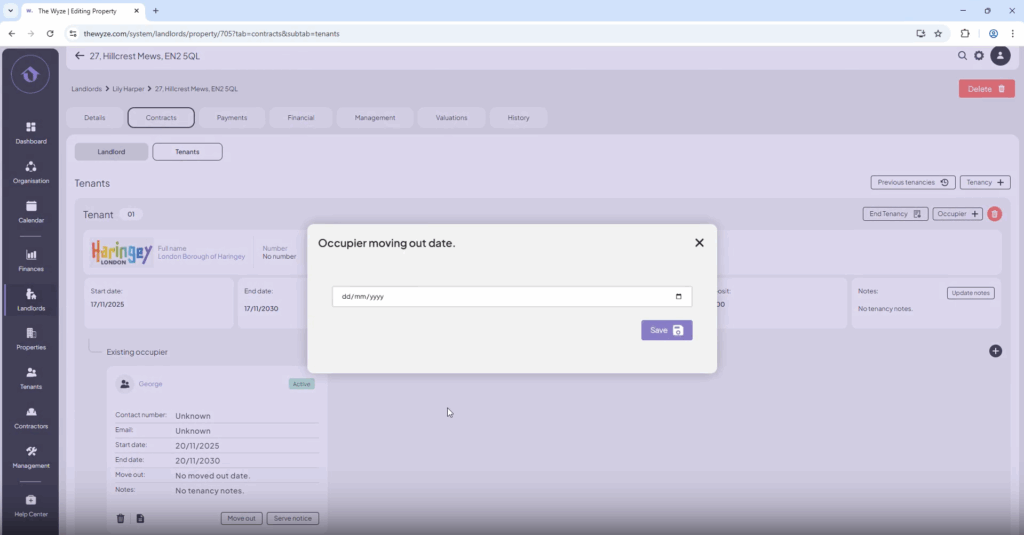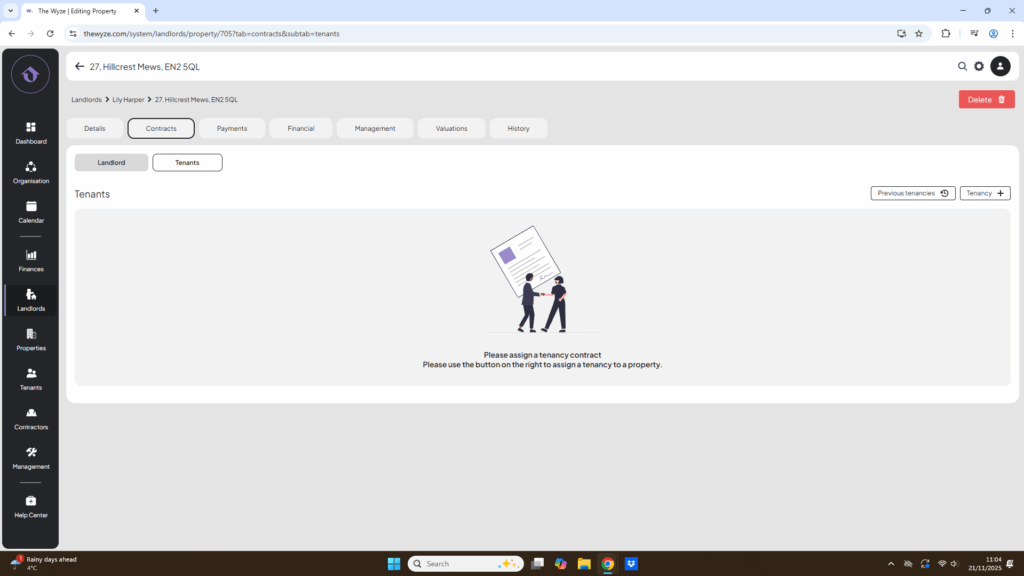 - To review past tenancies, go to the right-hand side and select ‘previous tenancies’.